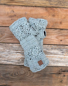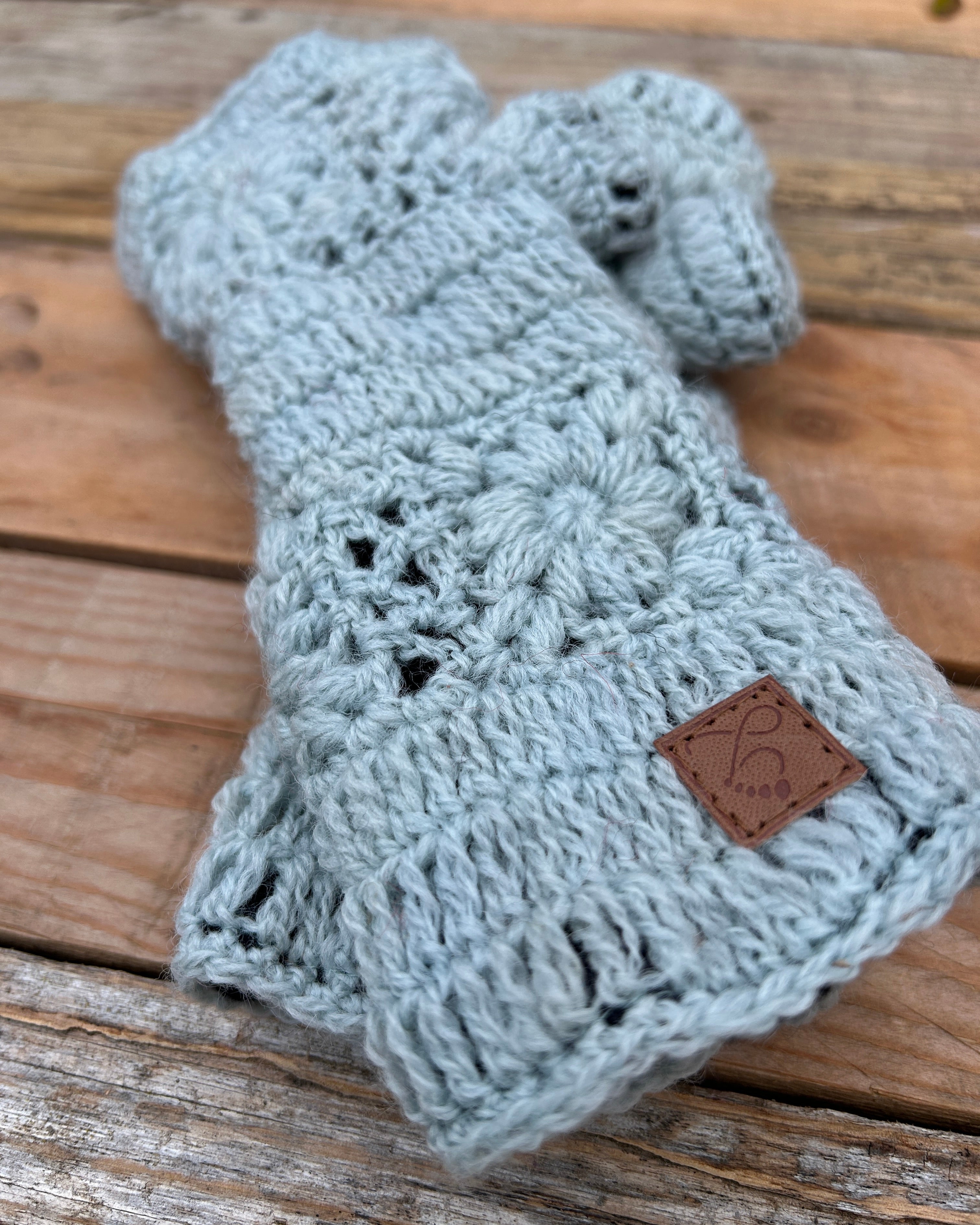 Crochet Flower Wristwarmers - Icy Blue