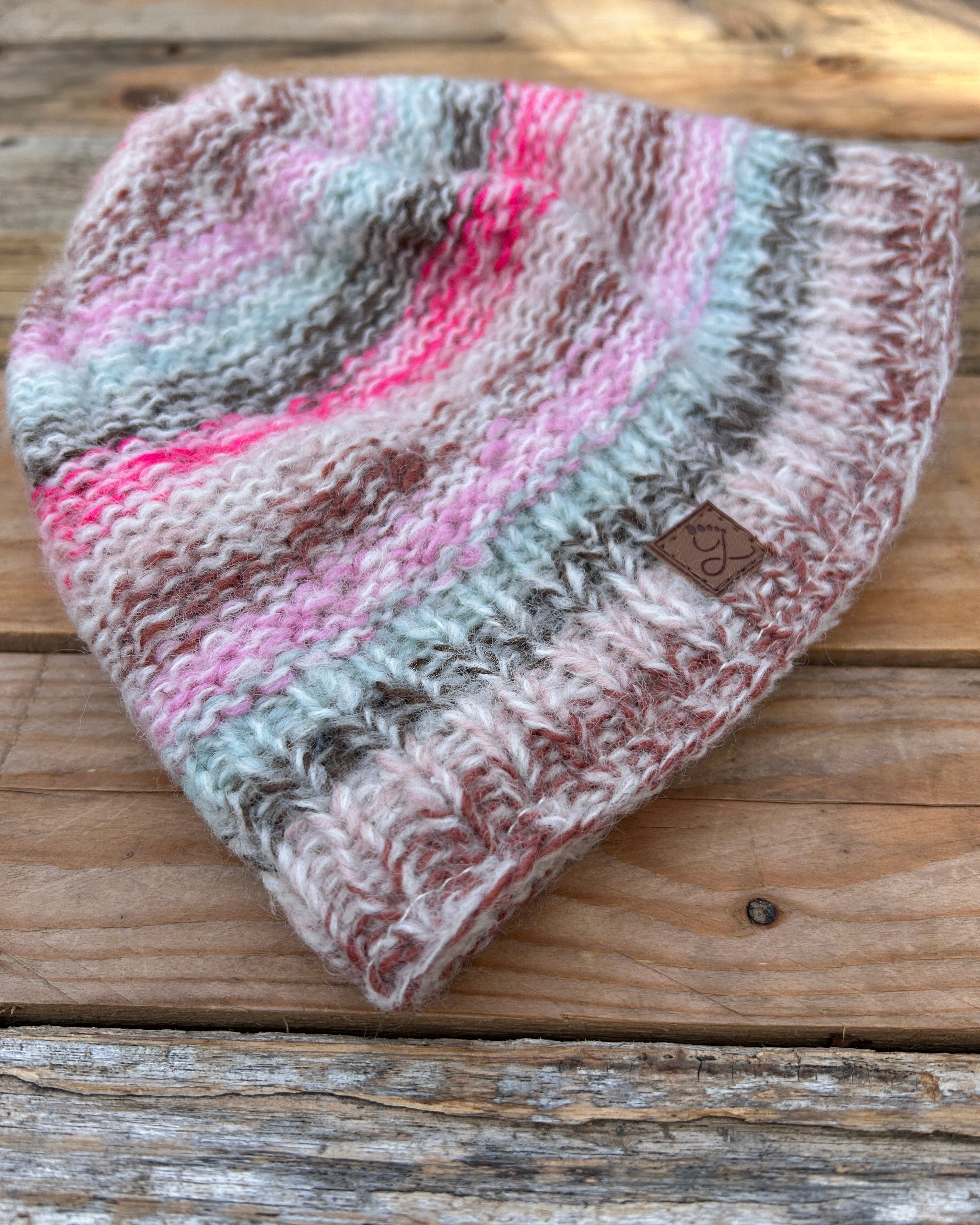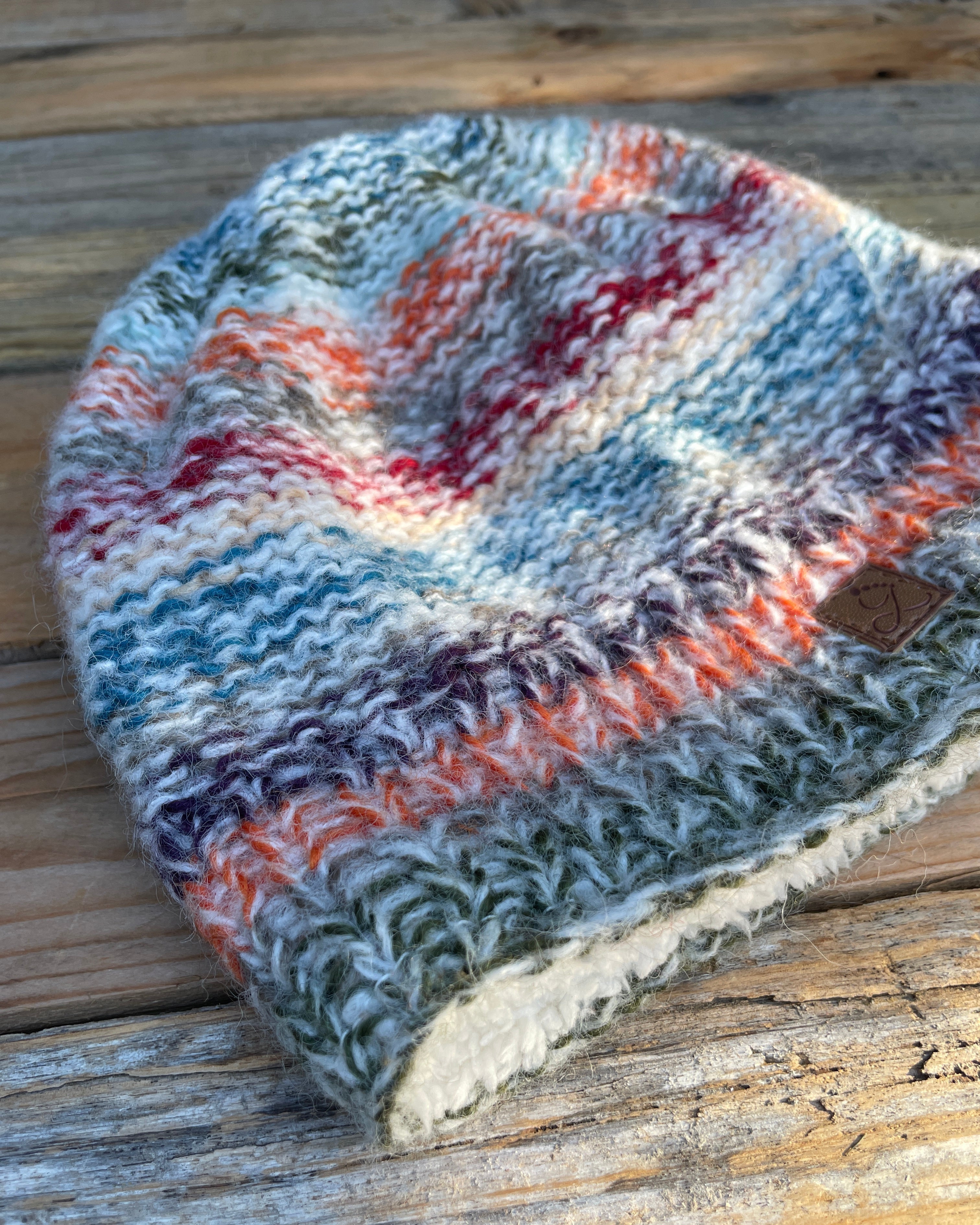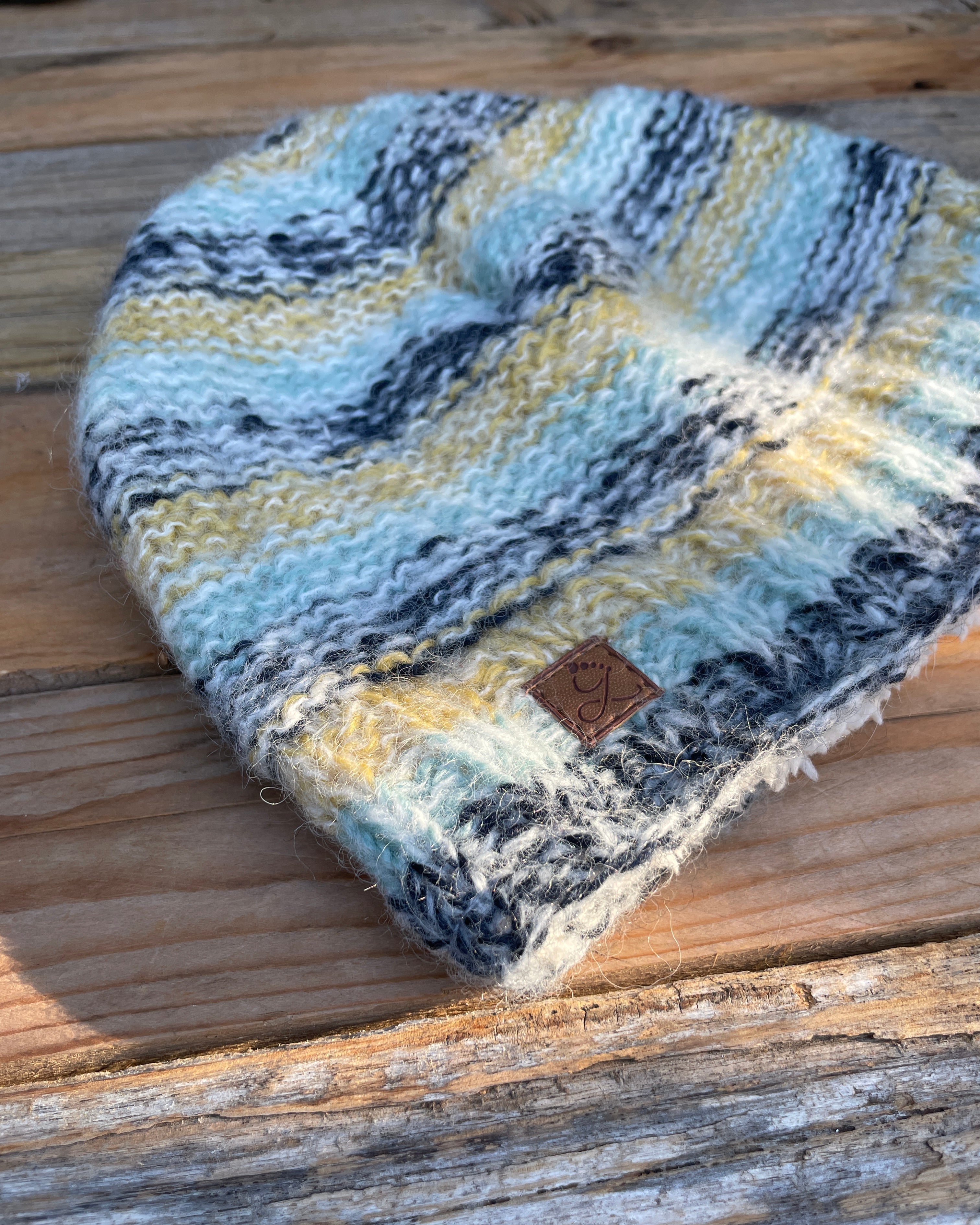 These stripy mohair beanies are as soft and airy as a cloud. They’re light to wear but surprisingly warm, with a super soft sherpa lining that feels dreamy against your skin. Everyone's going to love these... you, your kid that normally hates 'itchy hats', those with less hair than they used to have..... Easy, cosy, and effortlessly cool.