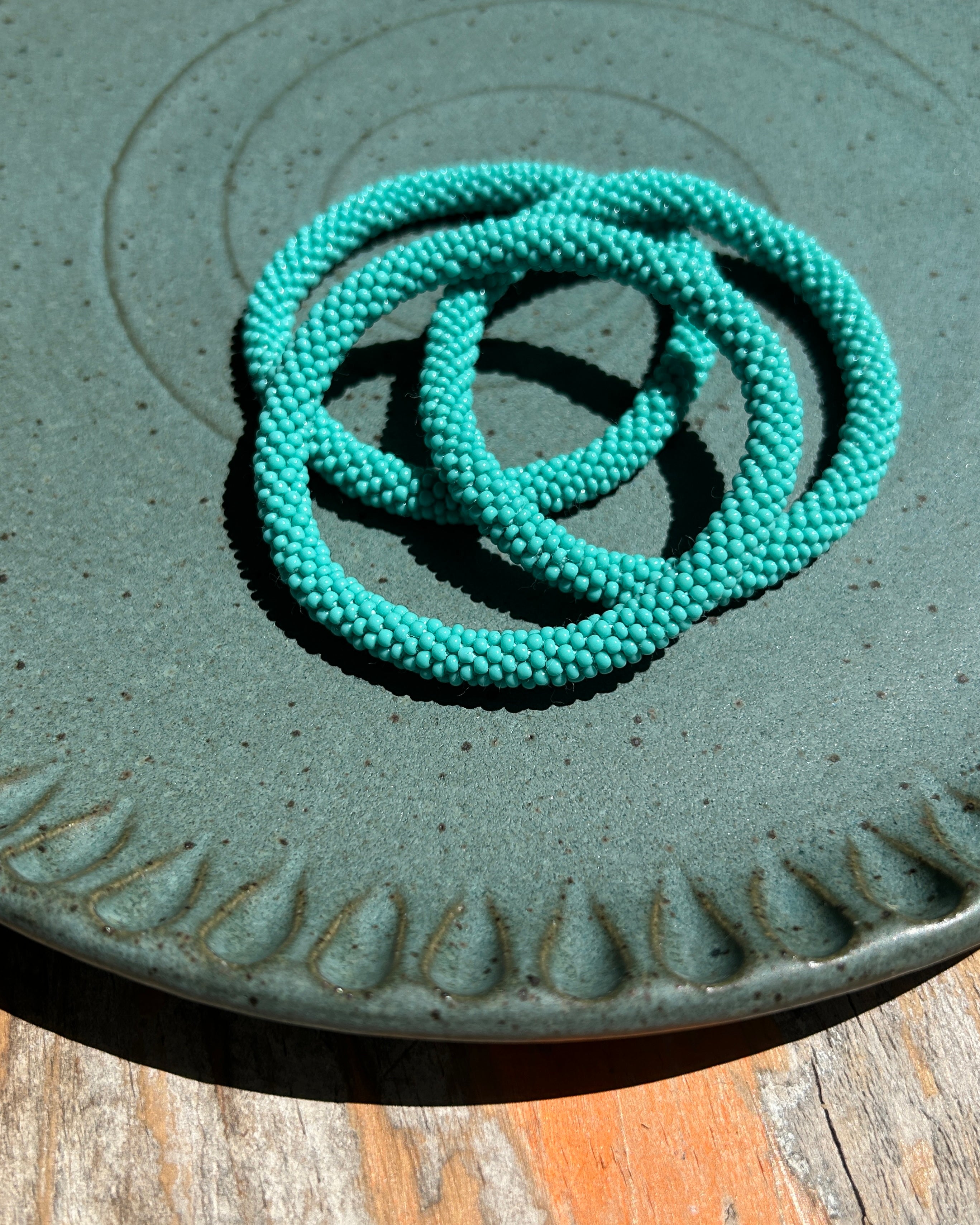 Add a touch of sparkle to your outfit with our beautiful hand-crocheted, beaded bracelets. Each one is carefully crafted from hundreds of tiny glass beads that catch the light as you move.