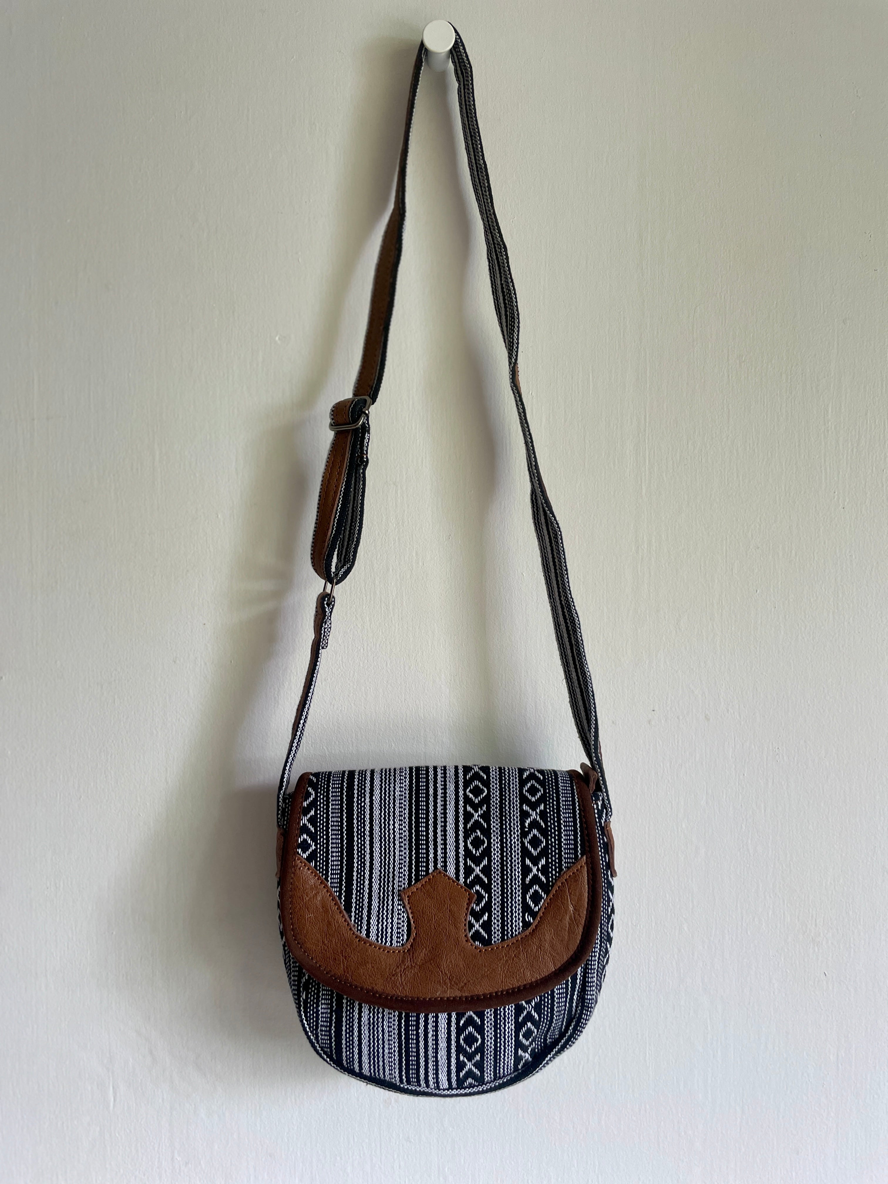 Naturally tanned water buffalo leather and vibrant woven cotton combine to great effect, creating a unique characterful bag that you can take everywhere with you. The quality stitching and materials mean this is a bag that will last you for years.
