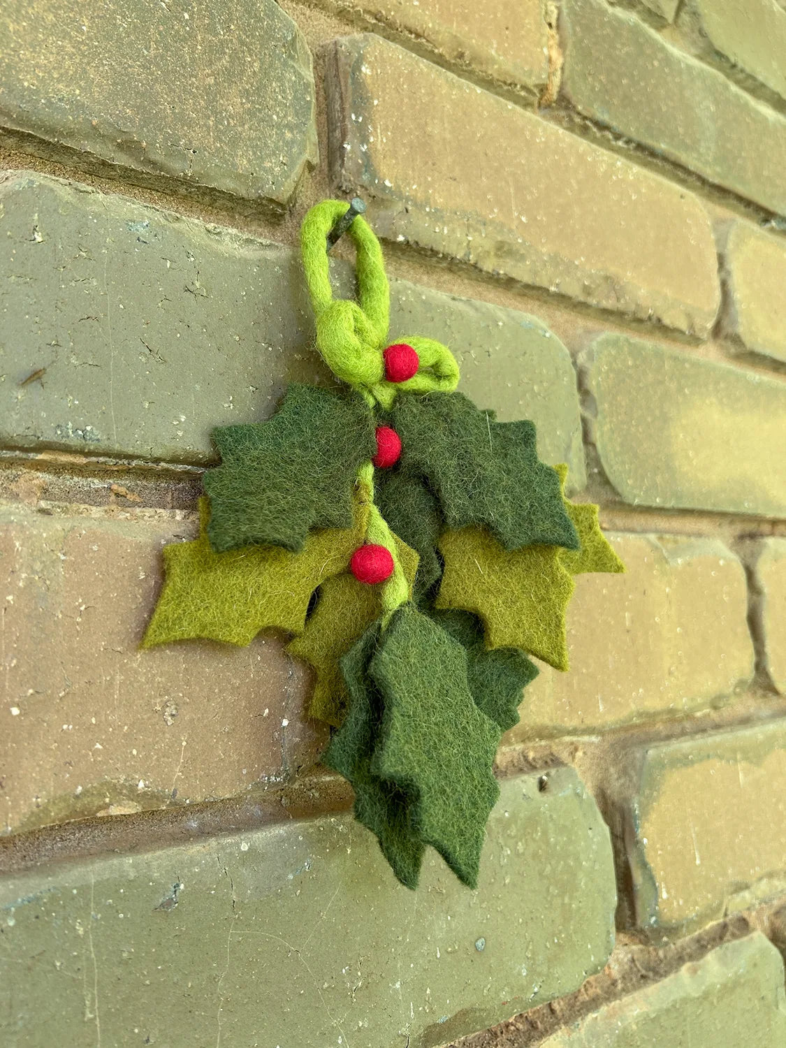 A sweet felt holly sprig to add a soft, subtle touch of festive cheer.