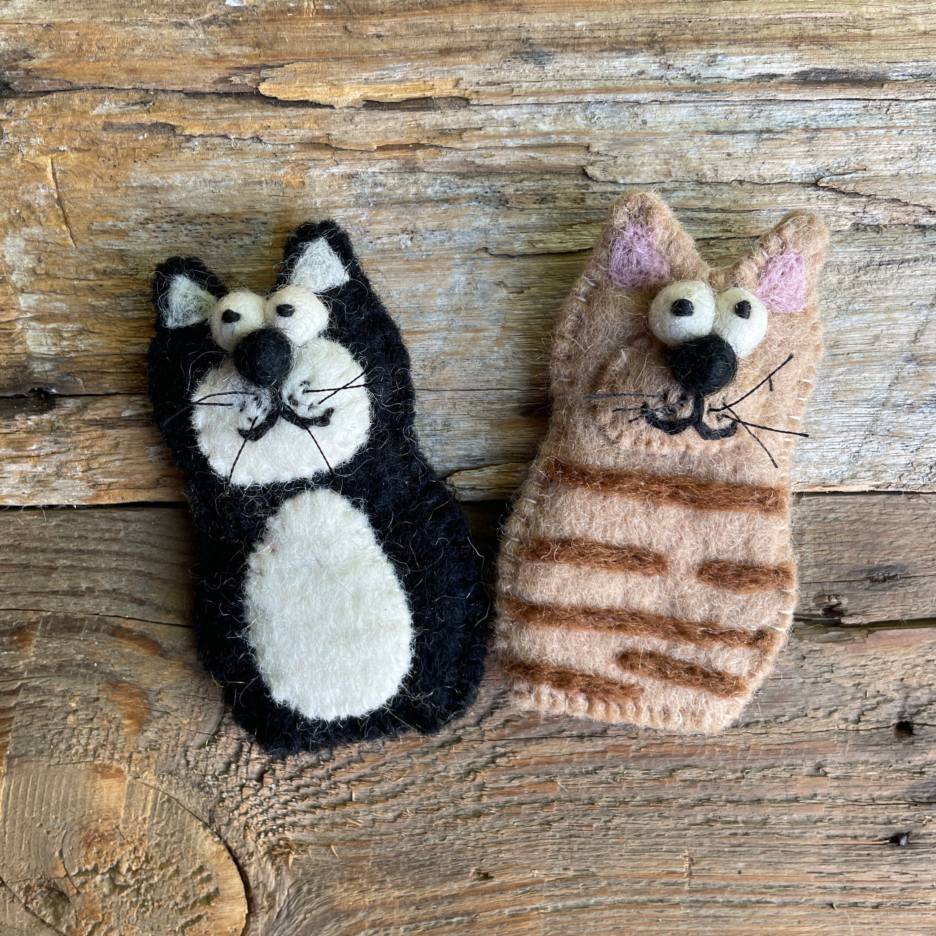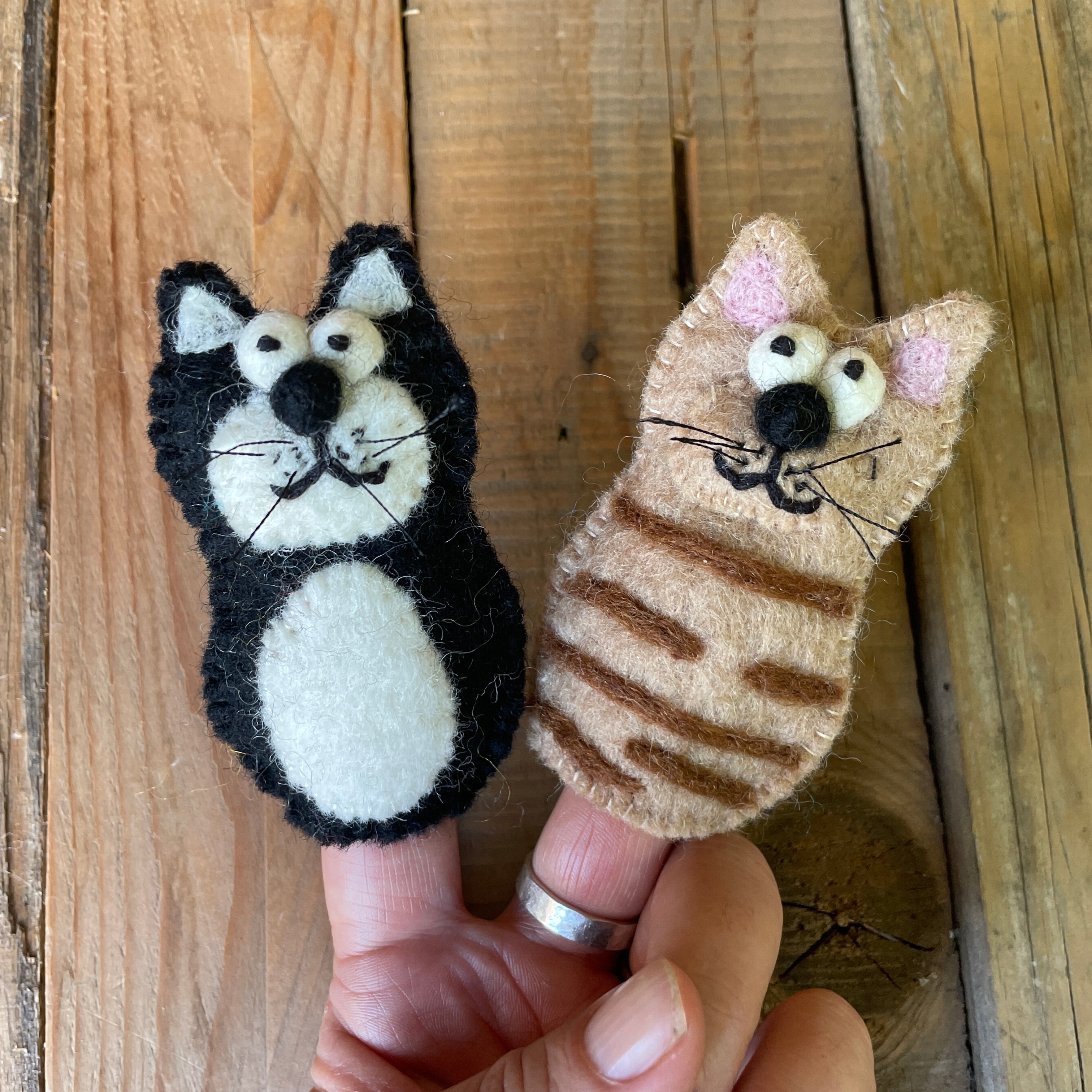 Finger puppets are a great way for young (and old) to engage in imaginative play and tell stories.  These two kooky cats look like they could have a lot of fun together.