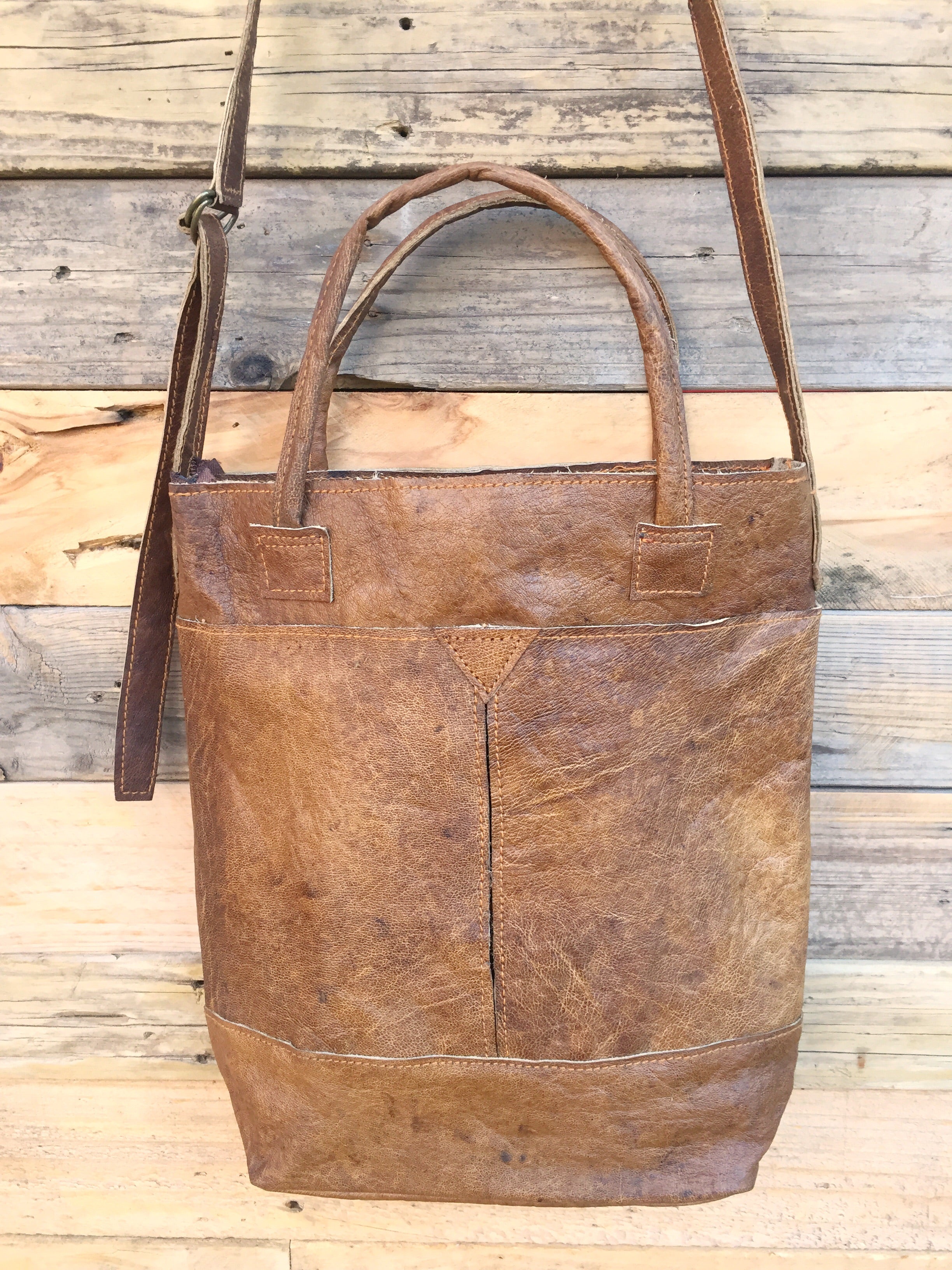 The perfection of these bags lies in their imperfection. They are rustic, rugged, soft, light and if this is your style then they are just perfect. They are made in the mountains of Nepal from buffalo hides, naturally tanned using bark and leaves. The natural colours and textures of the leather shine through and give each bag its character.