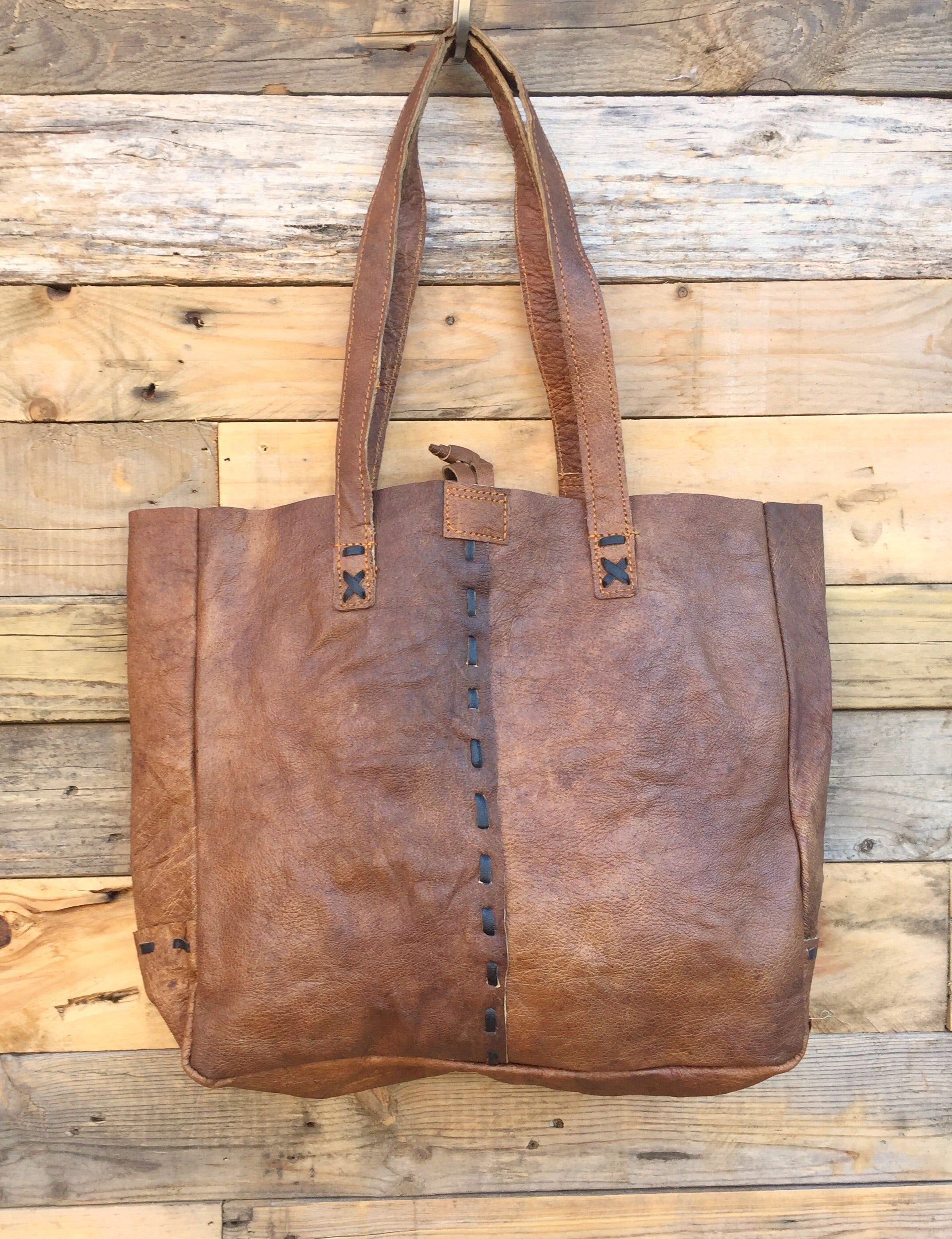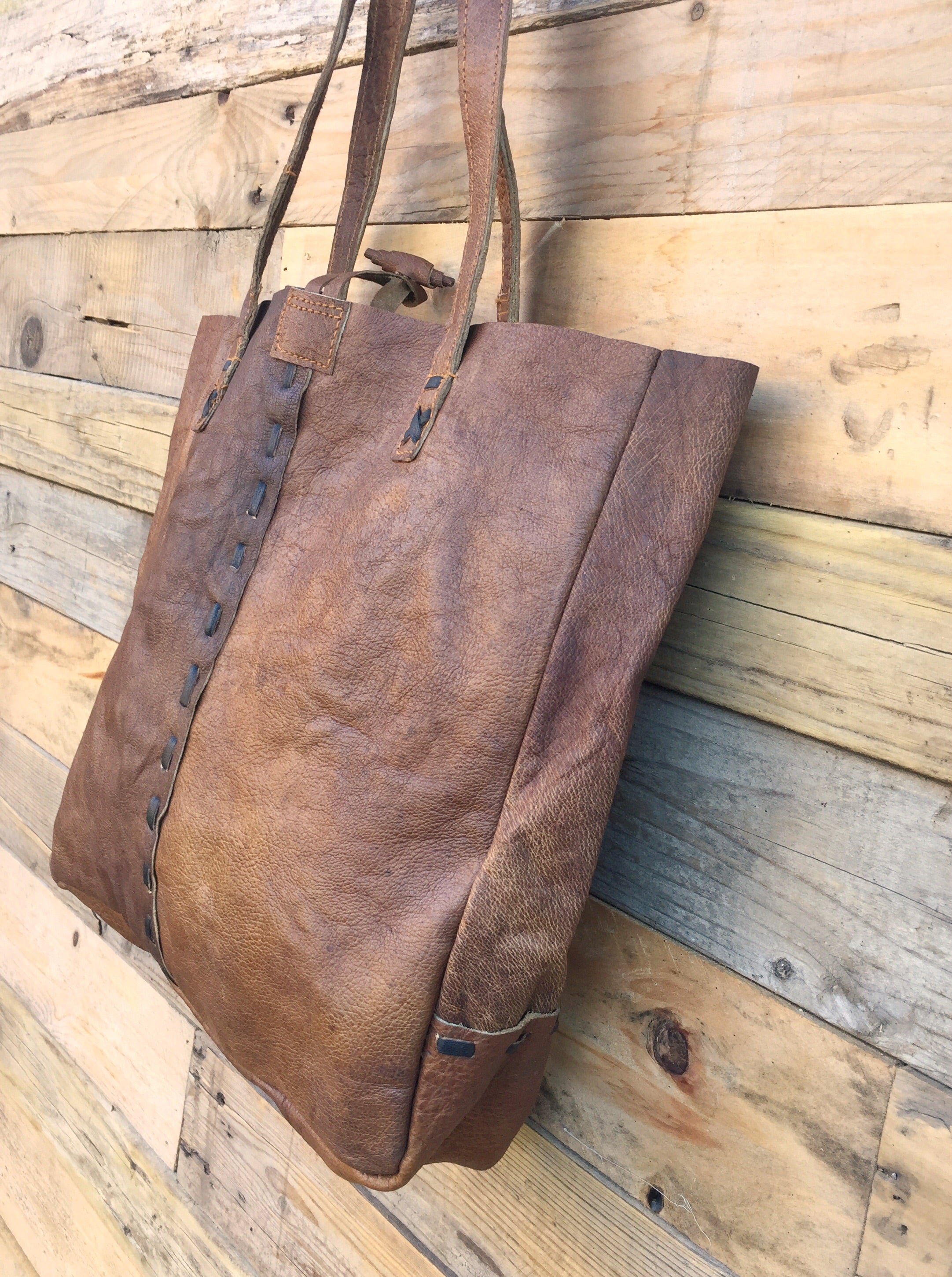 The perfection of these bags lies in their imperfection. They are rustic, rugged, soft, light and if this is your style then they are just perfect. They are made in the mountains of Nepal from buffalo hides, naturally tanned using bark and leaves. The natural colours and textures of the leather shine through and give each bag its character.