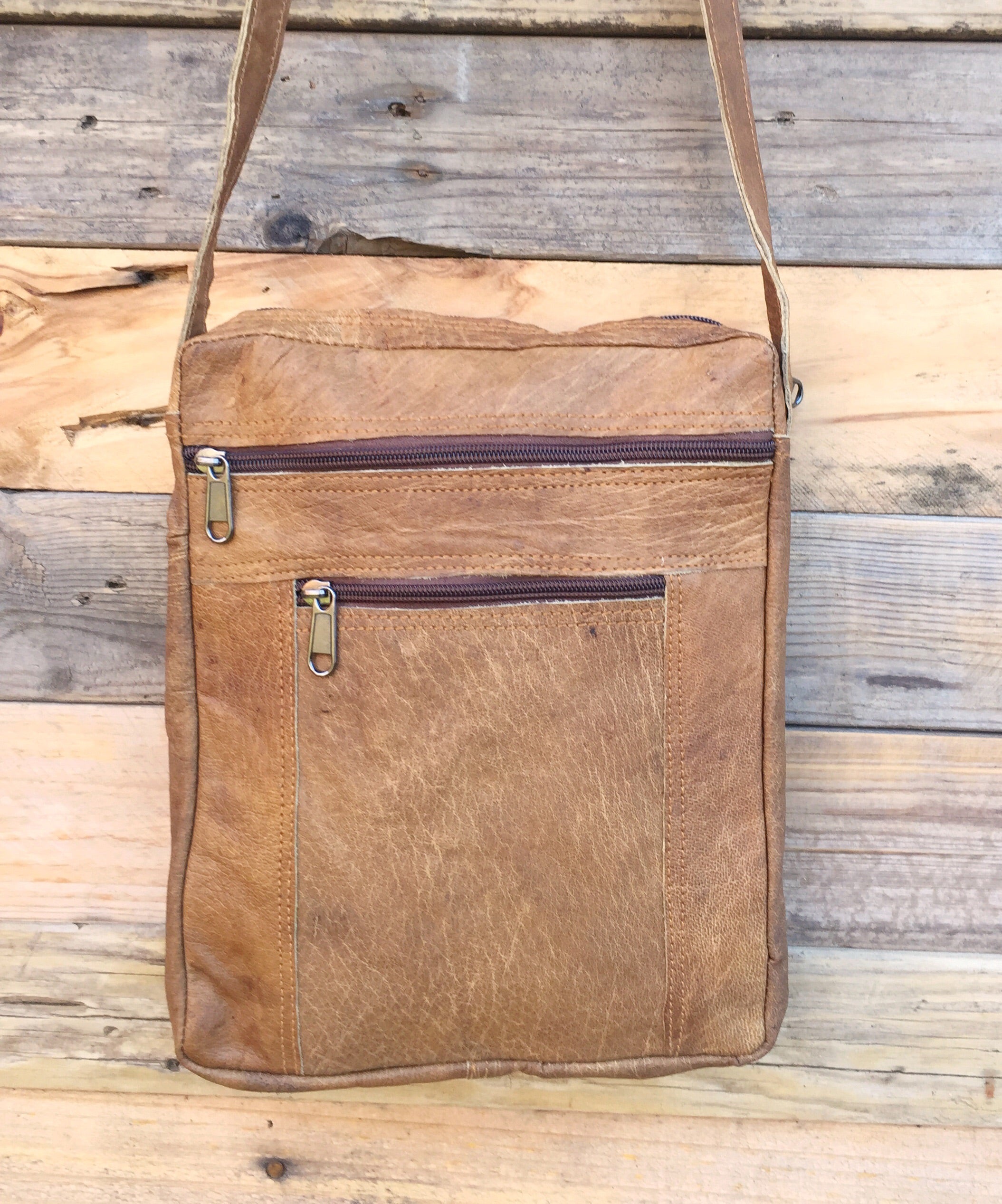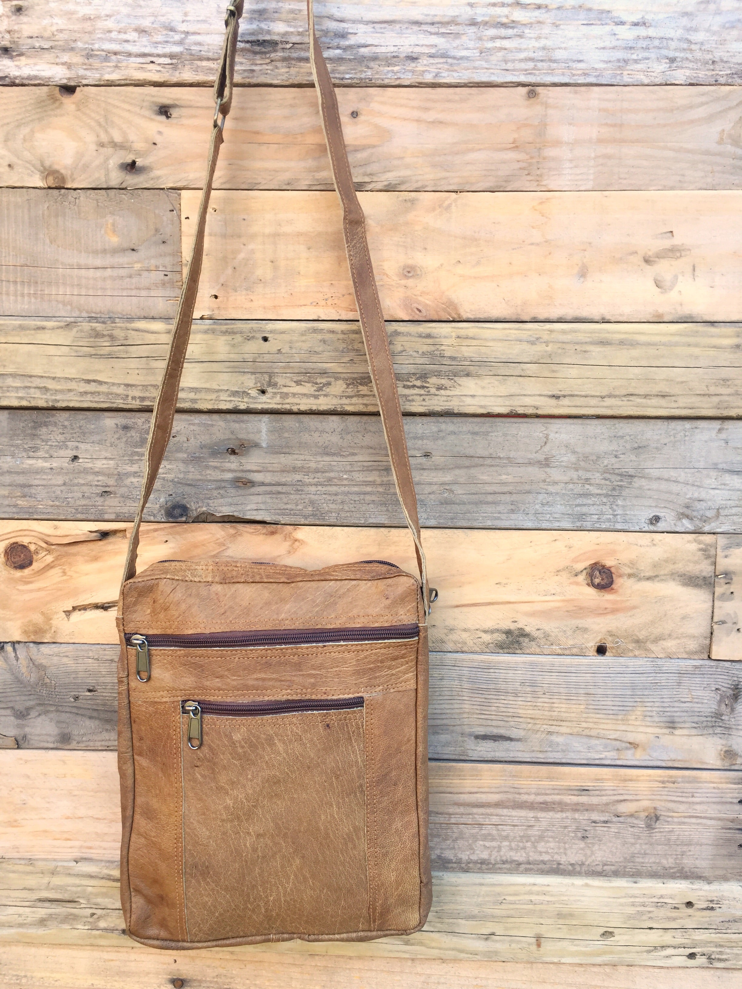 The perfection of these bags lies in their imperfection. They are rustic, rugged, soft, light and if this is your style then they are just perfect. They are made in the mountains of Nepal from buffalo hides, naturally tanned using bark and leaves. The natural colours and textures of the leather shine through and give each bag its character.