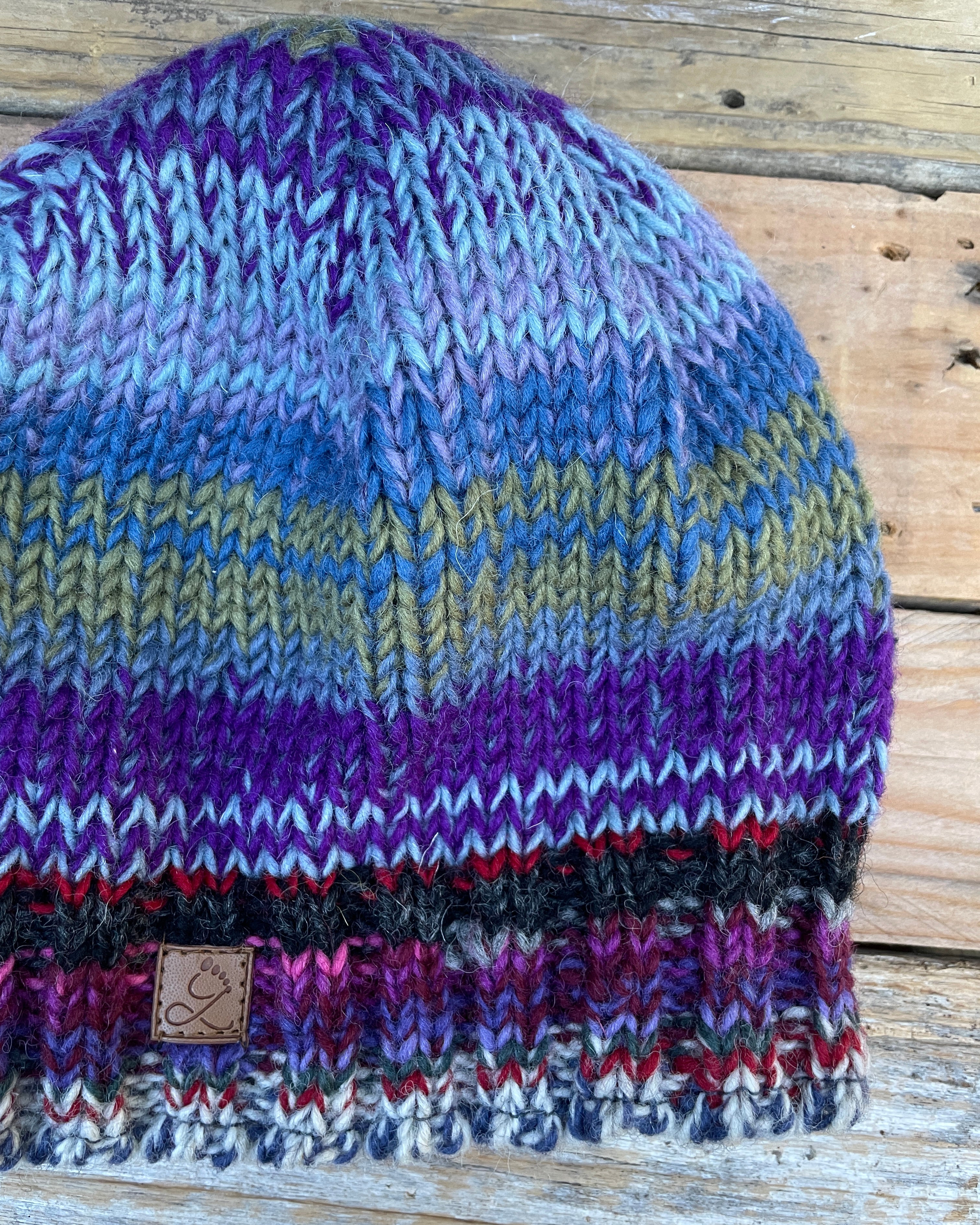 This bright and colourful beanie will cheer you up every time you put it on. The multicolour knit means it goes with pretty much anything - so you'll be reaching for it all winter. Hand-knit in Nepal from soft NZ wool it's ribbed edge keeps it cosy around the ears and the fleece lining keeps the itch away and the warmth in.