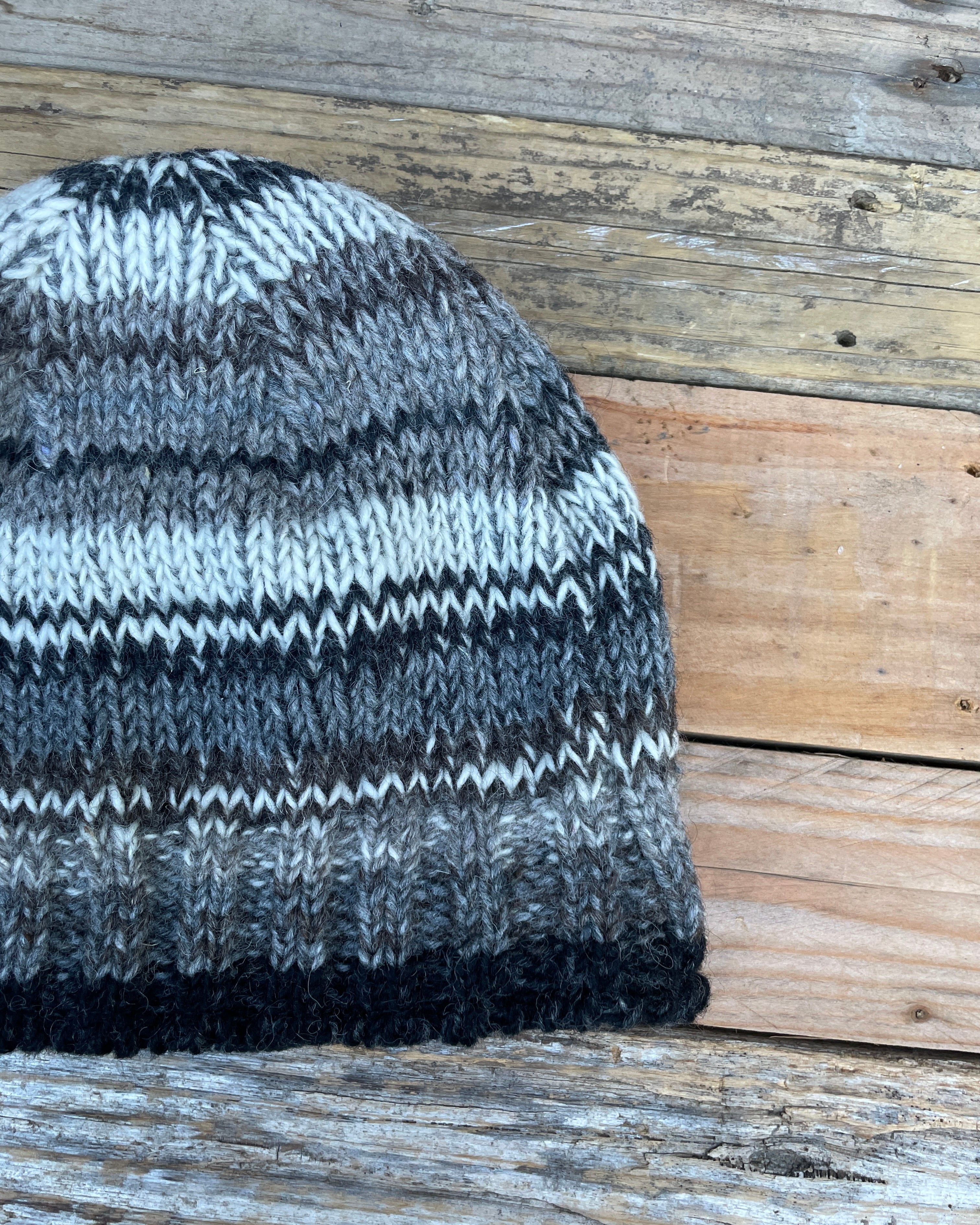 This bright and colourful beanie will cheer you up every time you put it on. The multicolour knit means it goes with pretty much anything - so you'll be reaching for it all winter. Hand-knit in Nepal from soft NZ wool it's ribbed edge keeps it cosy around the ears and the fleece lining keeps the itch away and the warmth in.