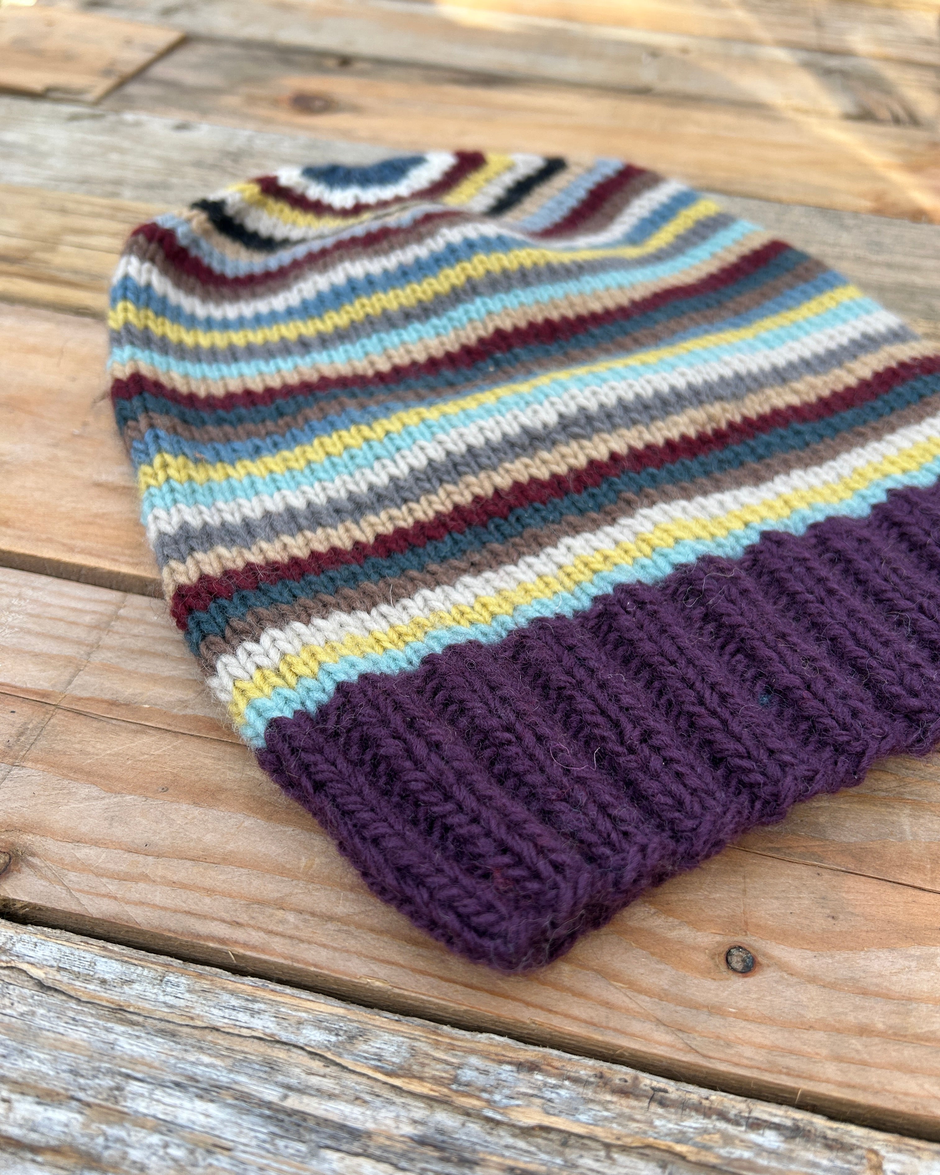 This stripy merino beanie is pure winter cheer — soft, warm, and ready for your next chilly walk. Hand-knit from super cosy New Zealand merino wool, it’s as comfortable as it is colourful. Wear it slouchy for a laid-back look, or turn up the brim for a snug, classic fit. However you wear it, you’ll stay toasty (and look great doing it).