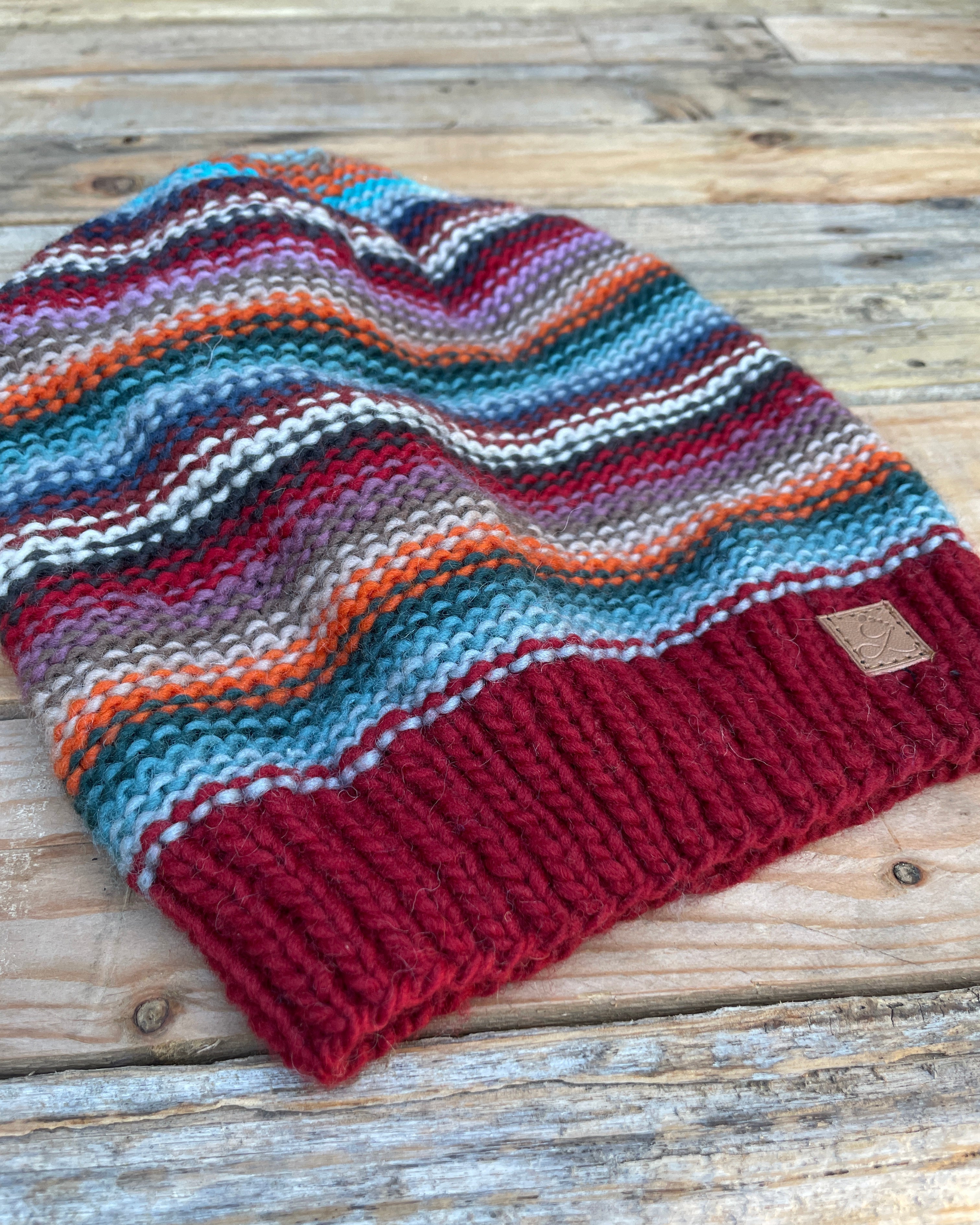 This stripy merino beanie is pure winter cheer — soft, warm, and ready for your next chilly walk. Hand-knit from super cosy New Zealand merino wool, it’s as comfortable as it is colourful. Wear it slouchy for a laid-back look, or turn up the brim for a snug, classic fit. However you wear it, you’ll stay toasty (and look great doing it).