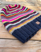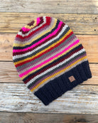 This stripy merino beanie is pure winter cheer — soft, warm, and ready for your next chilly walk. Hand-knit from super cosy New Zealand merino wool, it’s as comfortable as it is colourful. Wear it slouchy for a laid-back look, or turn up the brim for a snug, classic fit. However you wear it, you’ll stay toasty (and look great doing it).