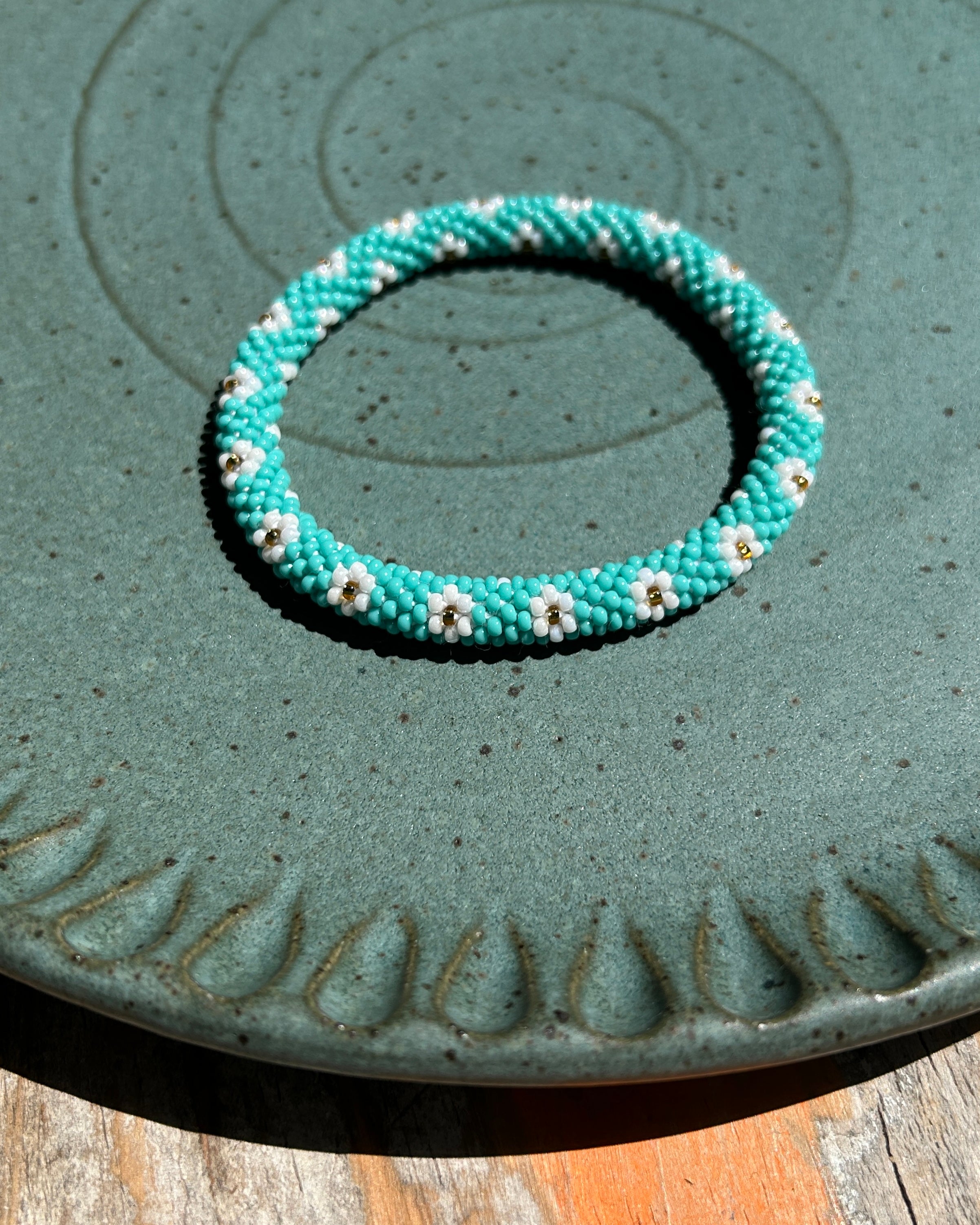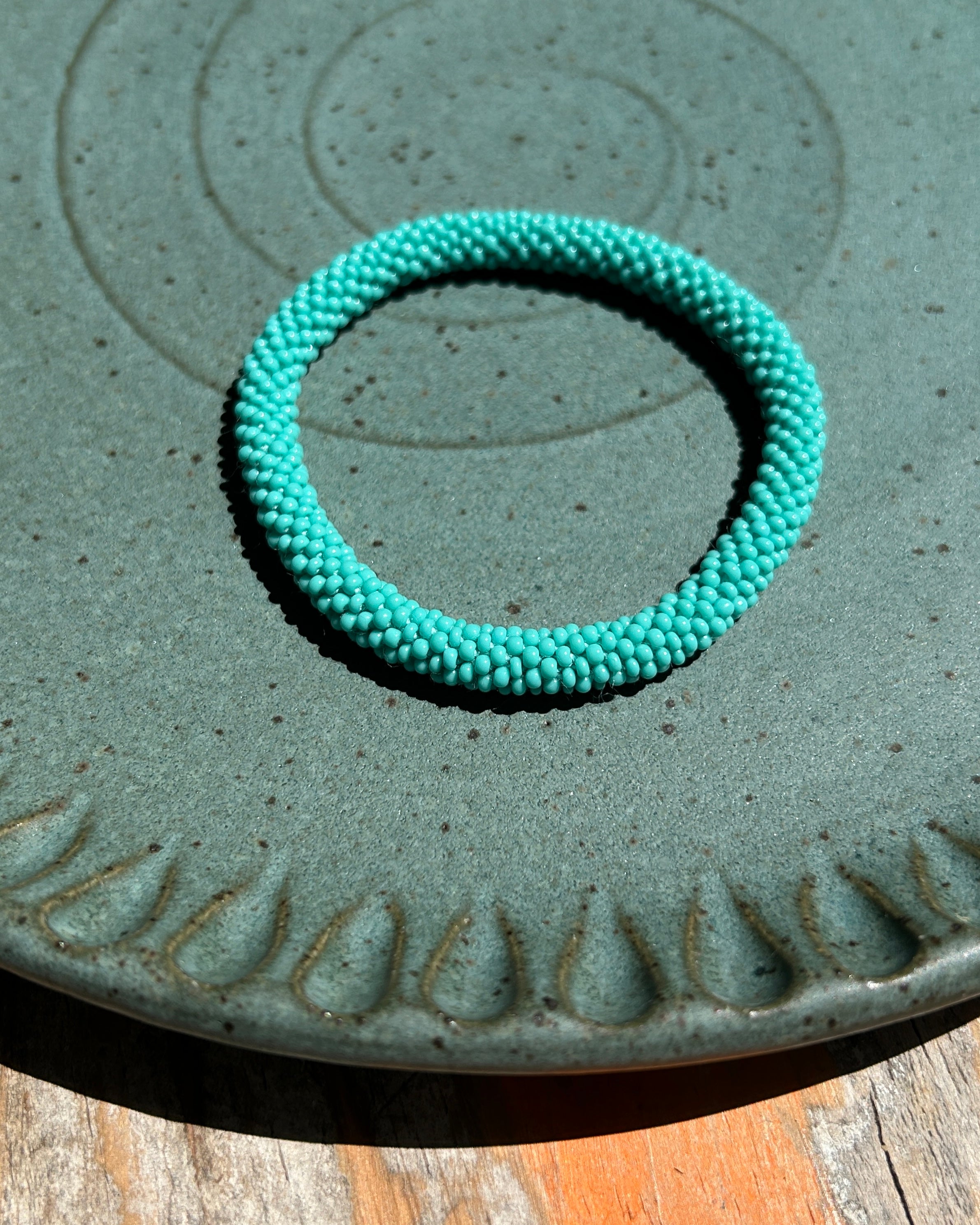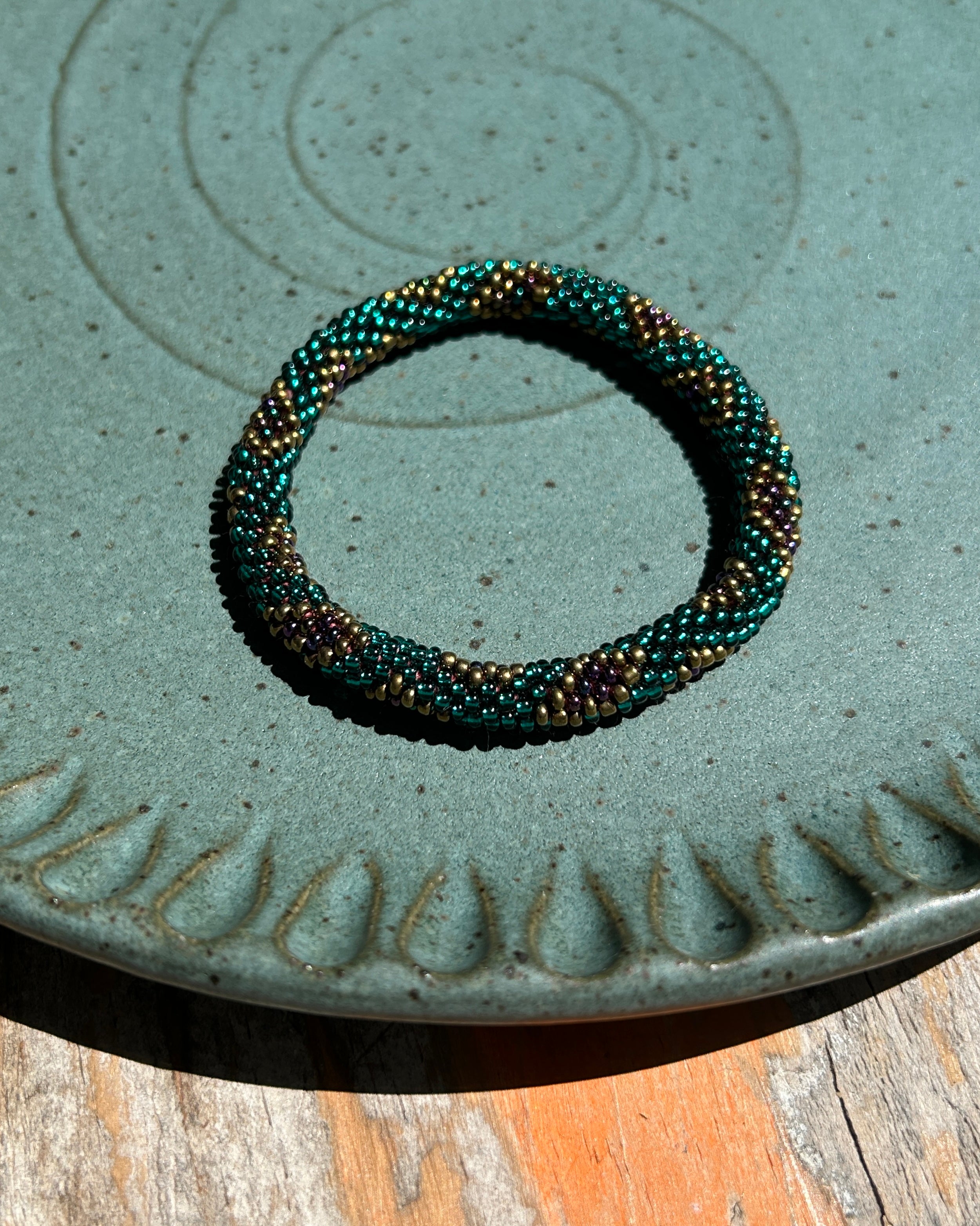 Add a touch of sparkle to your outfit with our beautiful hand-crocheted, beaded bracelets.  Each one is carefully crafted from hundreds of tiny glass beads that catch the light as you move.