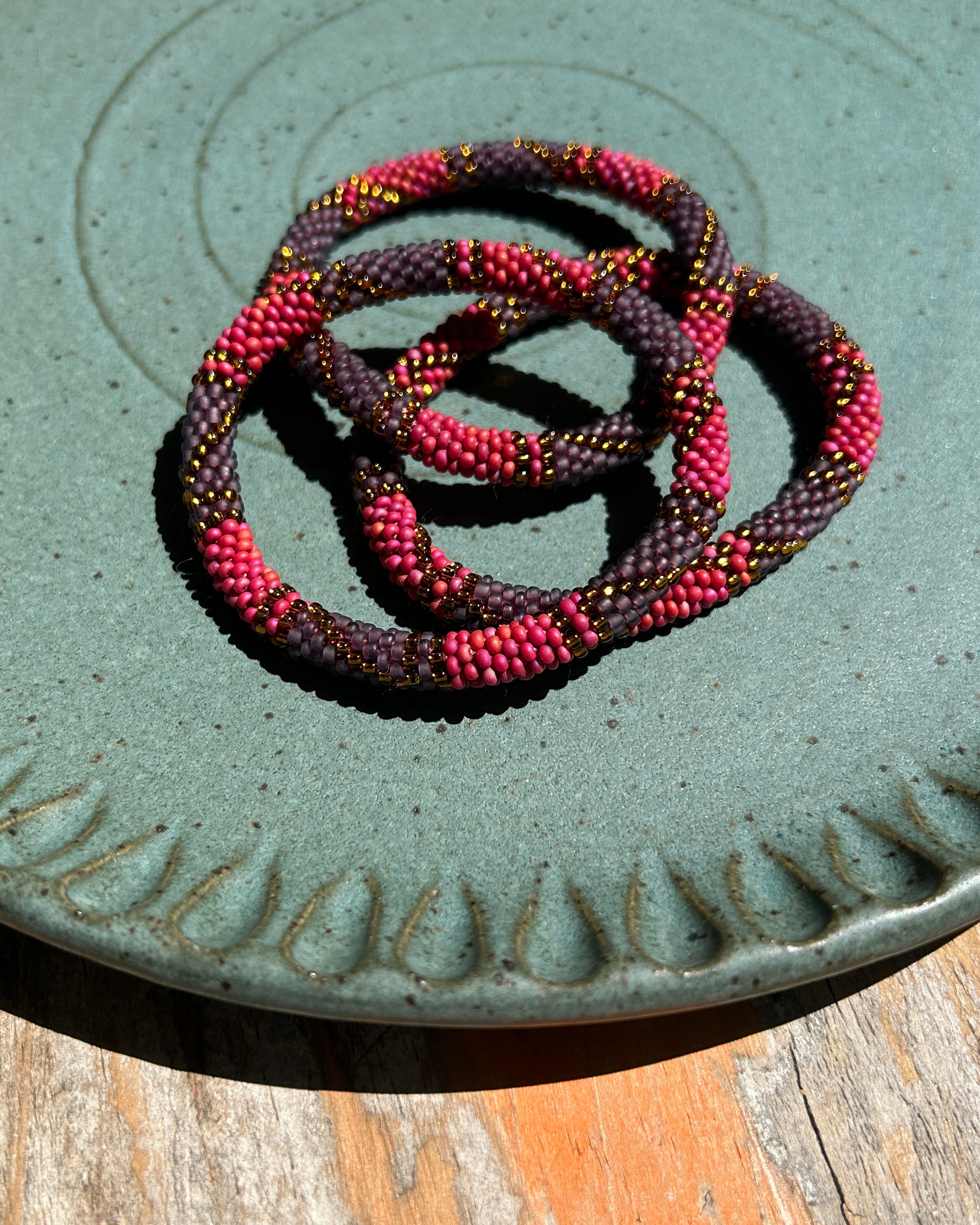Add a touch of sparkle to your outfit with our beautiful hand-crocheted, beaded bracelets. Each one is carefully crafted from hundreds of tiny glass beads that catch the light as you move.