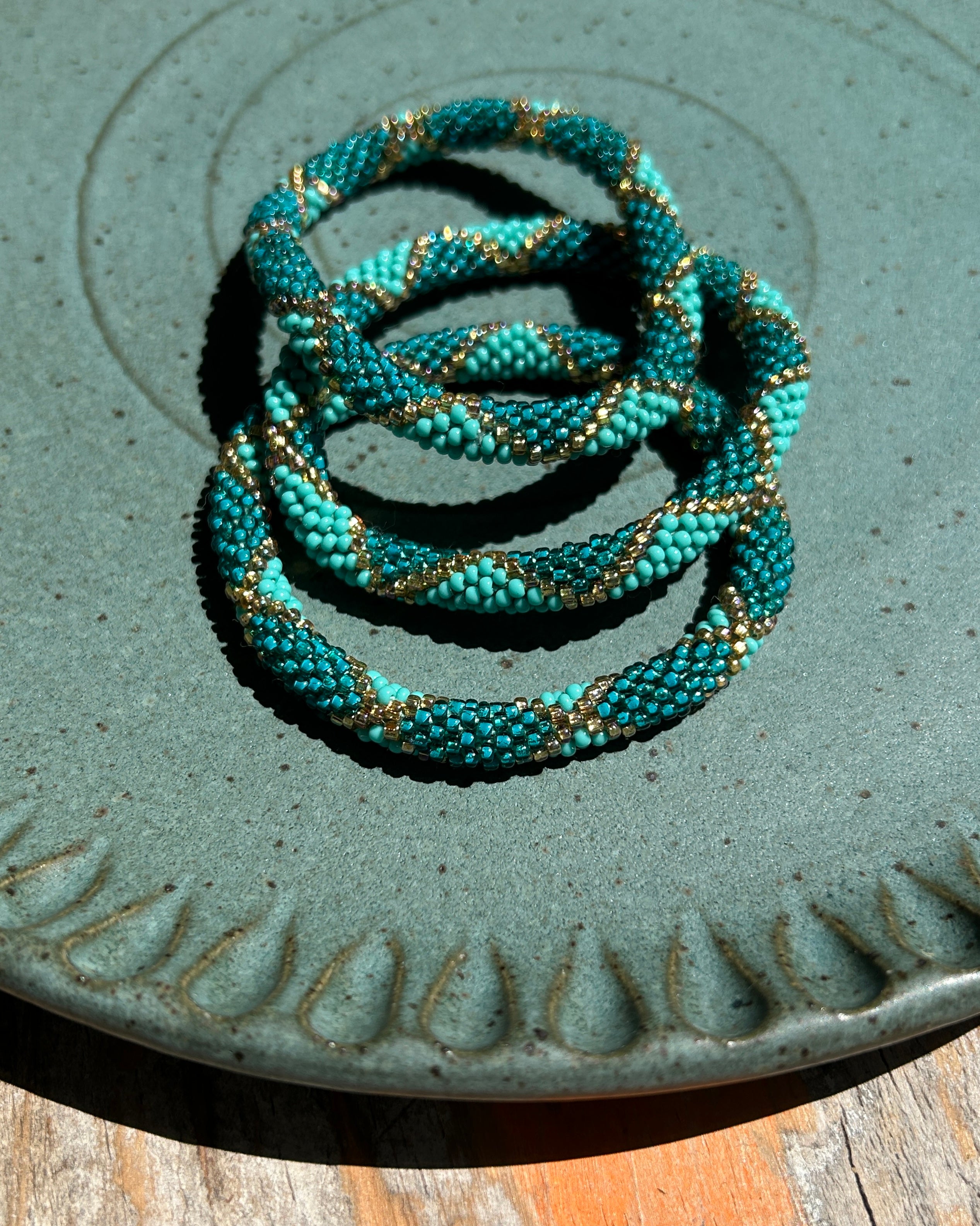 Add a touch of sparkle to your outfit with our beautiful hand-crocheted, beaded bracelets. Each one is carefully crafted from hundreds of tiny glass beads that catch the light as you move.