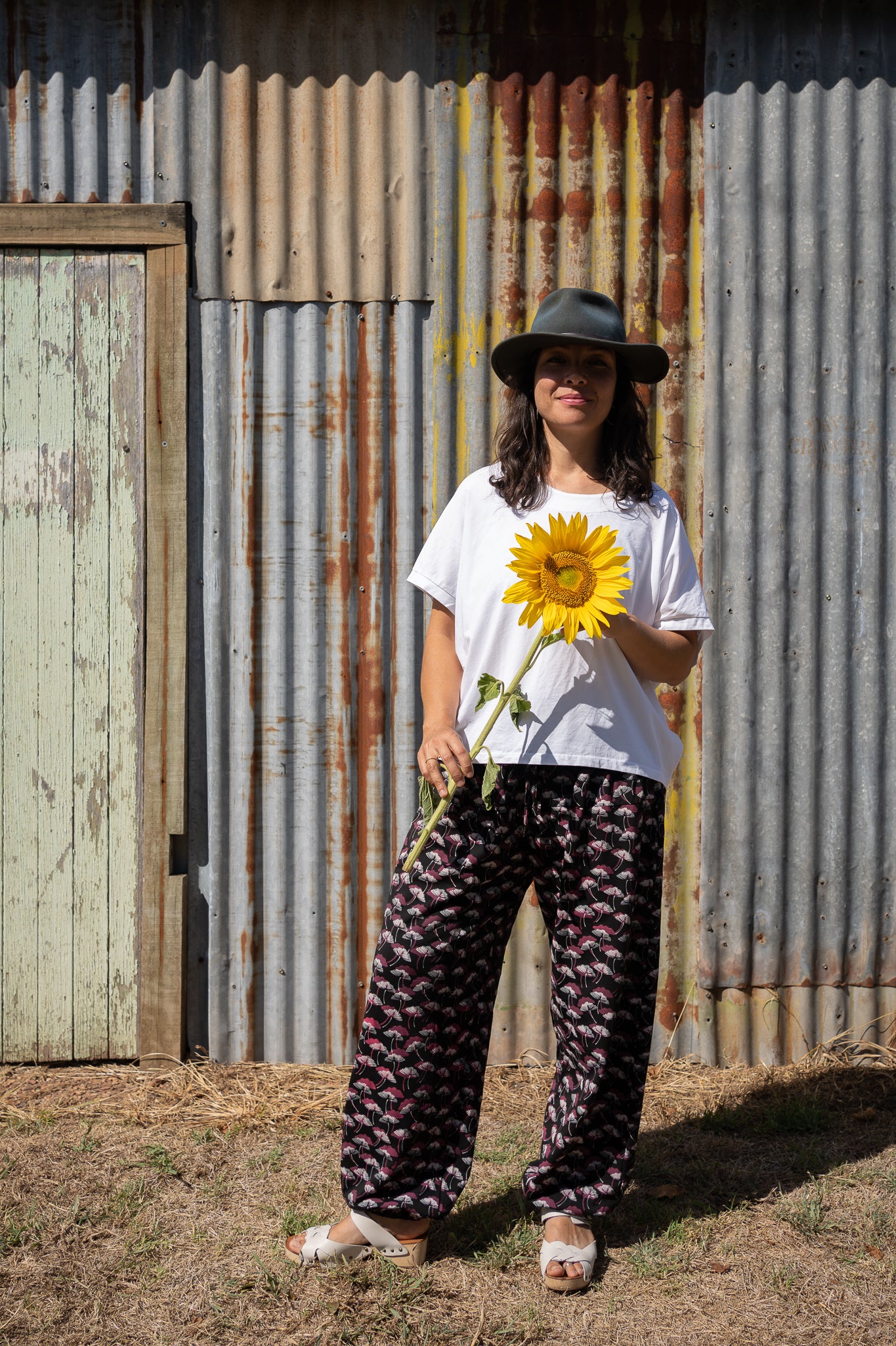 These comfy pants are crafted from dreamily soft and stretchy GOTS certified Organic Cotton Jersey. Perfect for yoga or just chilling at home, the laid-back relaxed design and fabulous print will mean you want to keep them on what ever you are up to.