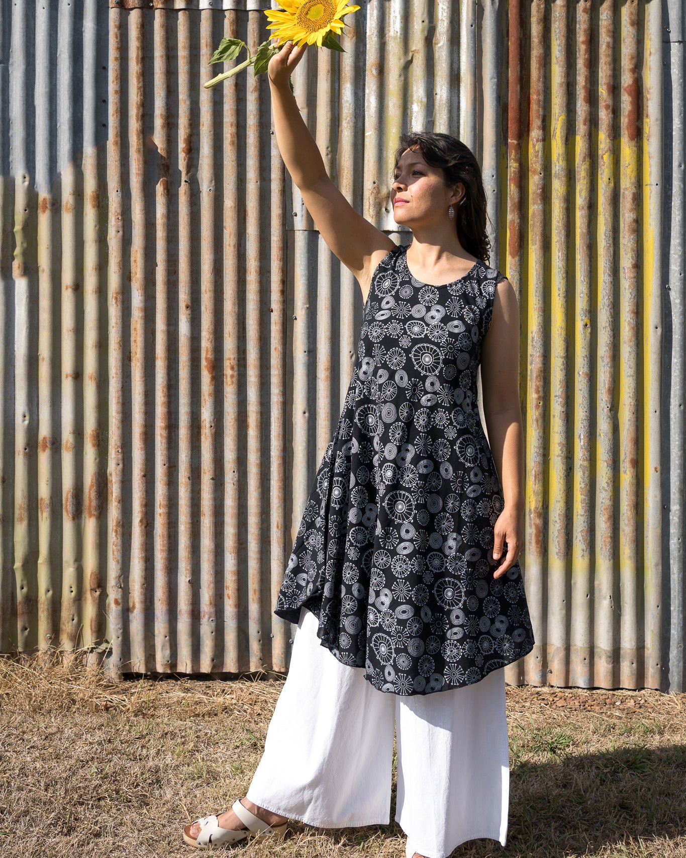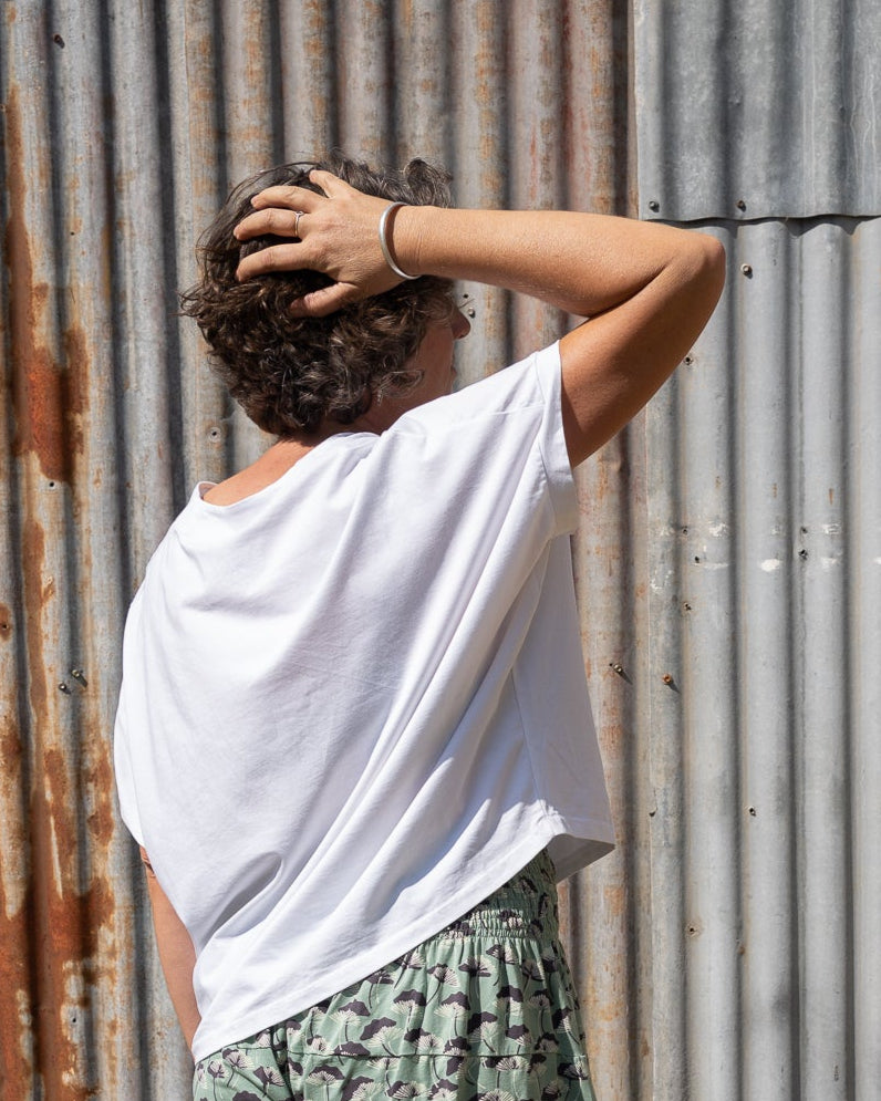 We use soft, washed woven cotton and GOTS-certified organic cotton jersey, all coloured with low-impact, AZO-free dyes - better for you, the planet, and the makers who bring these pieces to life.