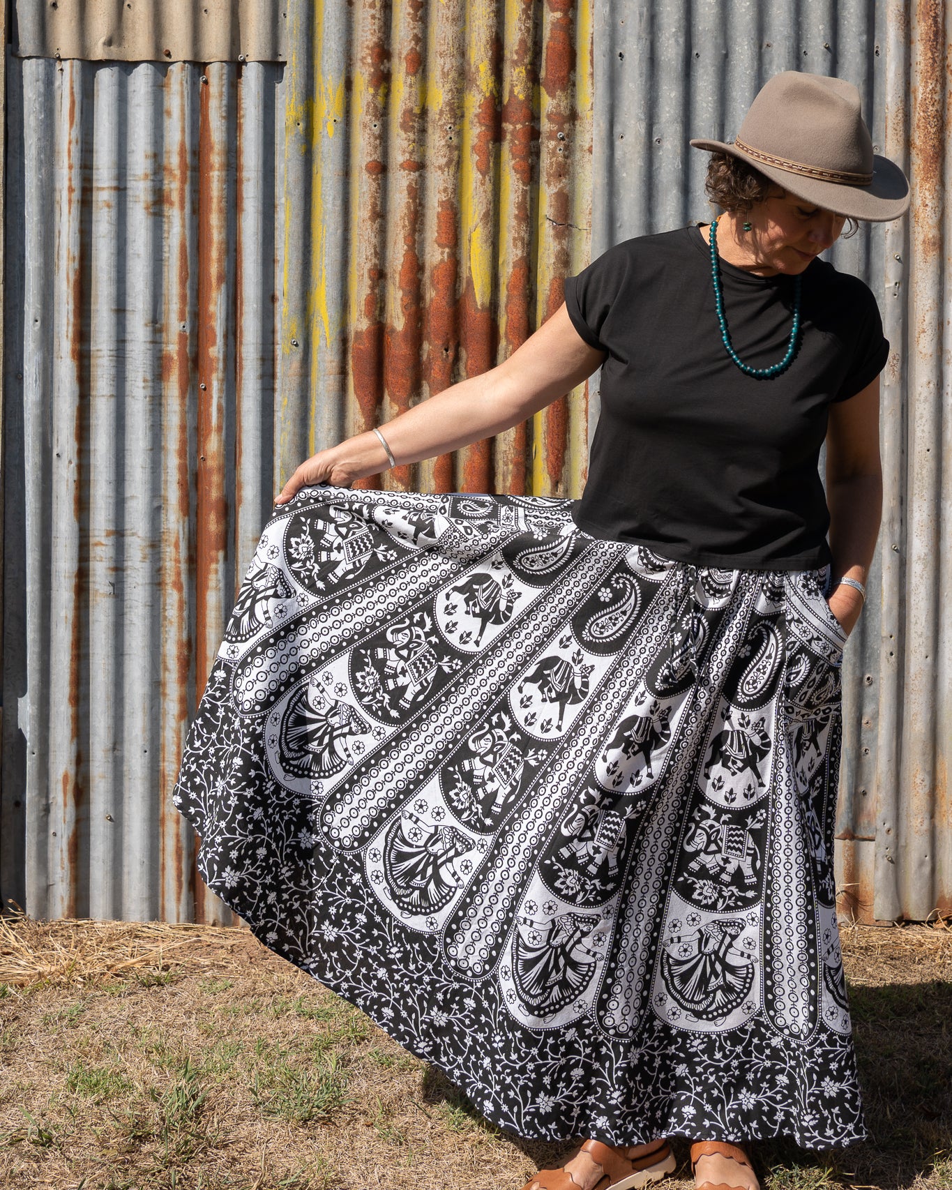 Our clothing is made in small batches in Kathmandu, cut and sewn just for us with care and intention.