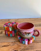 Brighten up your table with this set of 4 rainbow felt spiral coasters.