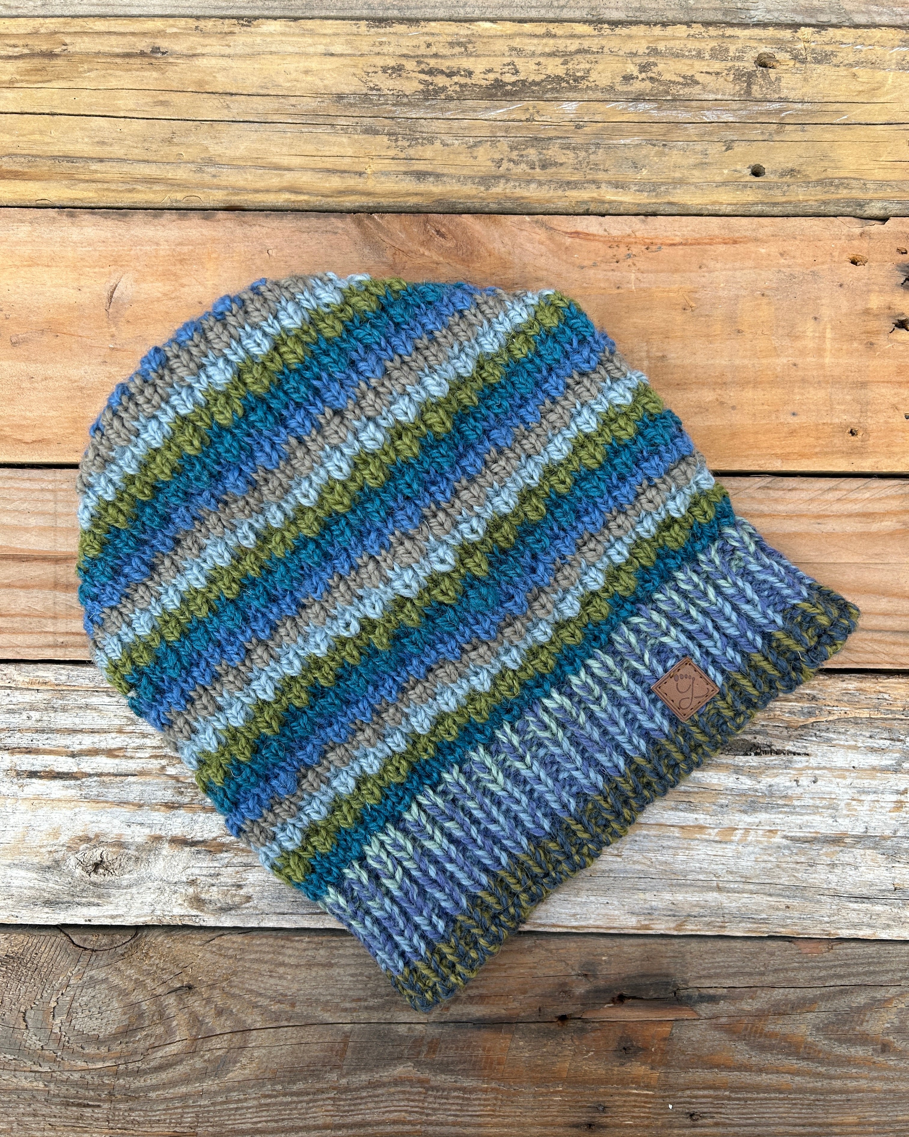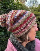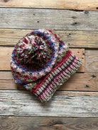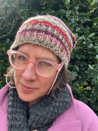 This bright and colourful beanie, with its casual slouch and pom pom, will cheer you up every time you put it on.  The multicolour knit means it goes with pretty much anything - so you'll be reaching for it all winter.  Hand-knit in Nepal from soft NZ wool it fits comfortably around your face and comes ready slouched (avaoid the styling angst). The half (around your ears half) fleece lining keeps the itch away and the warmth in.