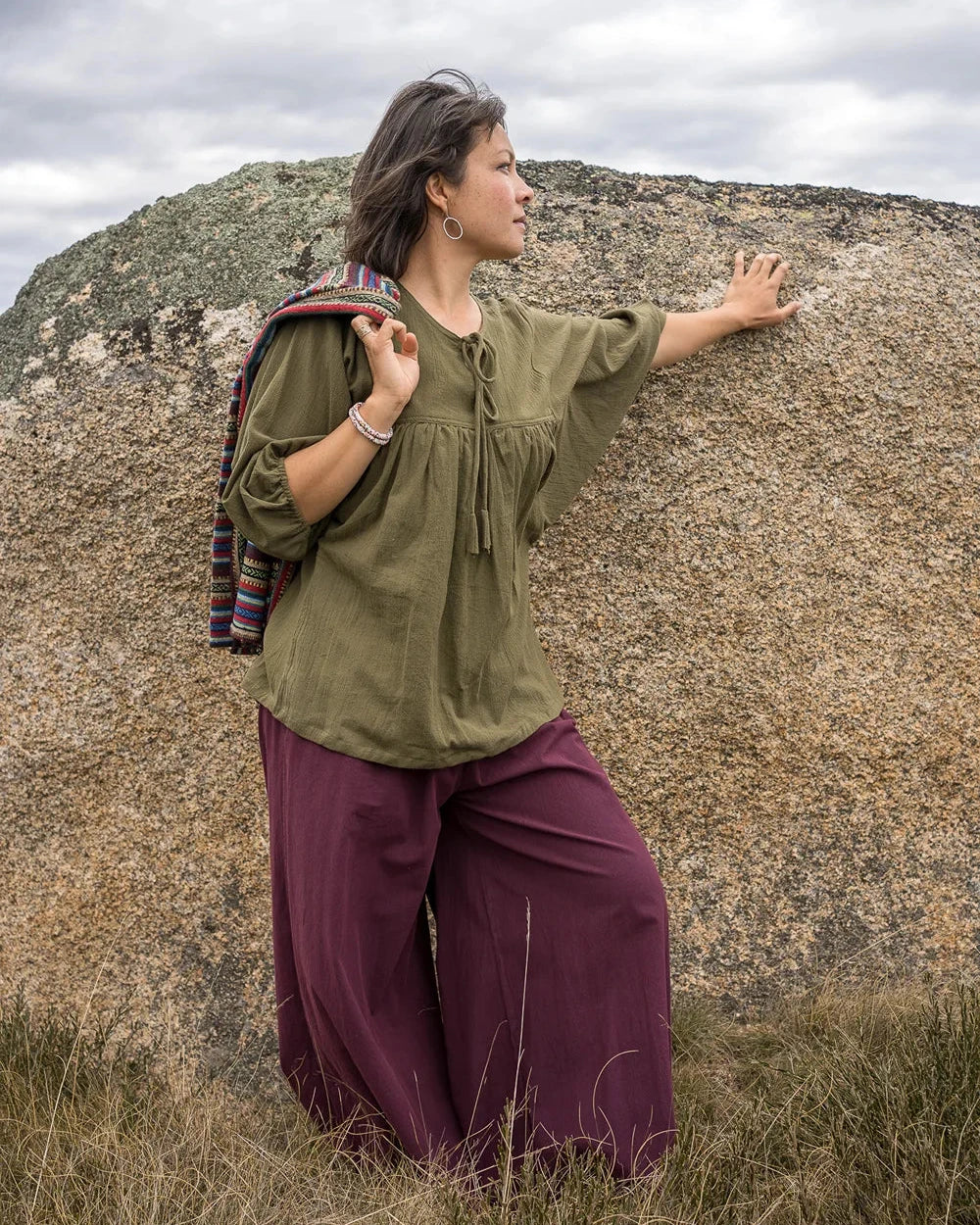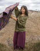 The wonderful colours of our woven cotton clothing are created using low impact dyes. This is better for the planet but it does mean that to get the best from your clothes you will need to take a little extra care.