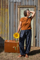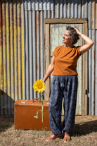 These comfy pants are crafted from dreamily soft and stretchy GOTS certified Organic Cotton Jersey. Perfect for yoga or just chilling at home, the laid-back relaxed design and fabulous print will mean you want to keep them on what ever you are up to.